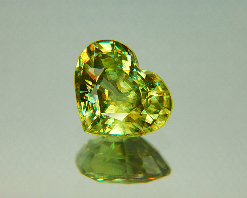 The Fire in Zircon, called dispersion, is caused by light entering the gemstone and separating into a prism of rainbow colors. Since antiquity, some Zircon, primarily the blues, colorless and golds, have been enhanced through heat treatment to permanently intensify their brilliant hues.